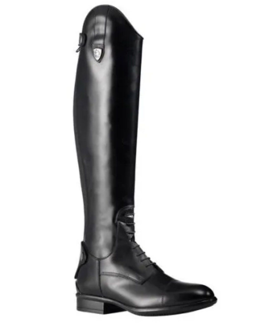 Stivali realizzati in pelle di vitello bottalata con cerniera lampo posteriore e stringhe anteriori elastiche.